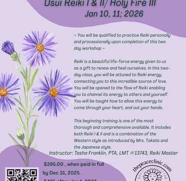 I teach classes with a maximum of six students to cultivate a sacred healing environment and plenty of practice time. The Peace Clinic offers a unique feeling of a sacred healing space that is perfect for learning Reiki.
