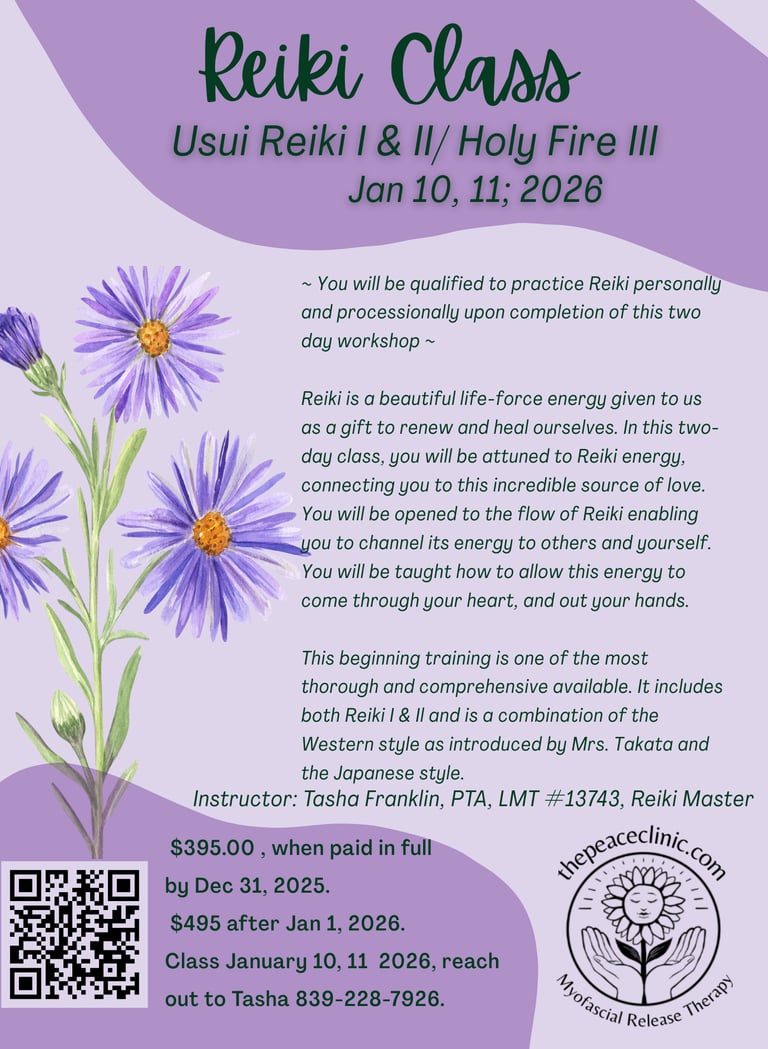 Email thepeaceclinic@yahoo.com or call/ text (839) 228-7926 for more information or to register for class